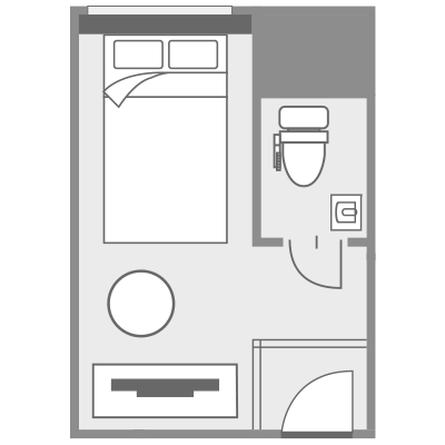 | 設備 | ベッド1台(幅140cm × 長さ200cm)/トイレ(ウォシュレット)/テレビ(衛星放送)/冷蔵庫/電気ポット/Wi-Fi/ドライヤー/貴重品金庫/空気清浄機 |